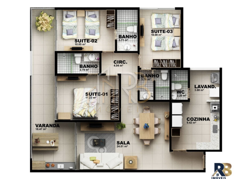 3 Dormitórios, sendo 3 suítesSituação