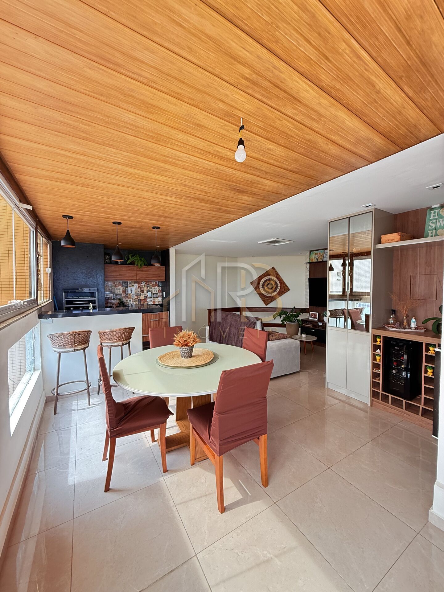 •Sala de TV/jantar integrada com churrasqueira elétrica