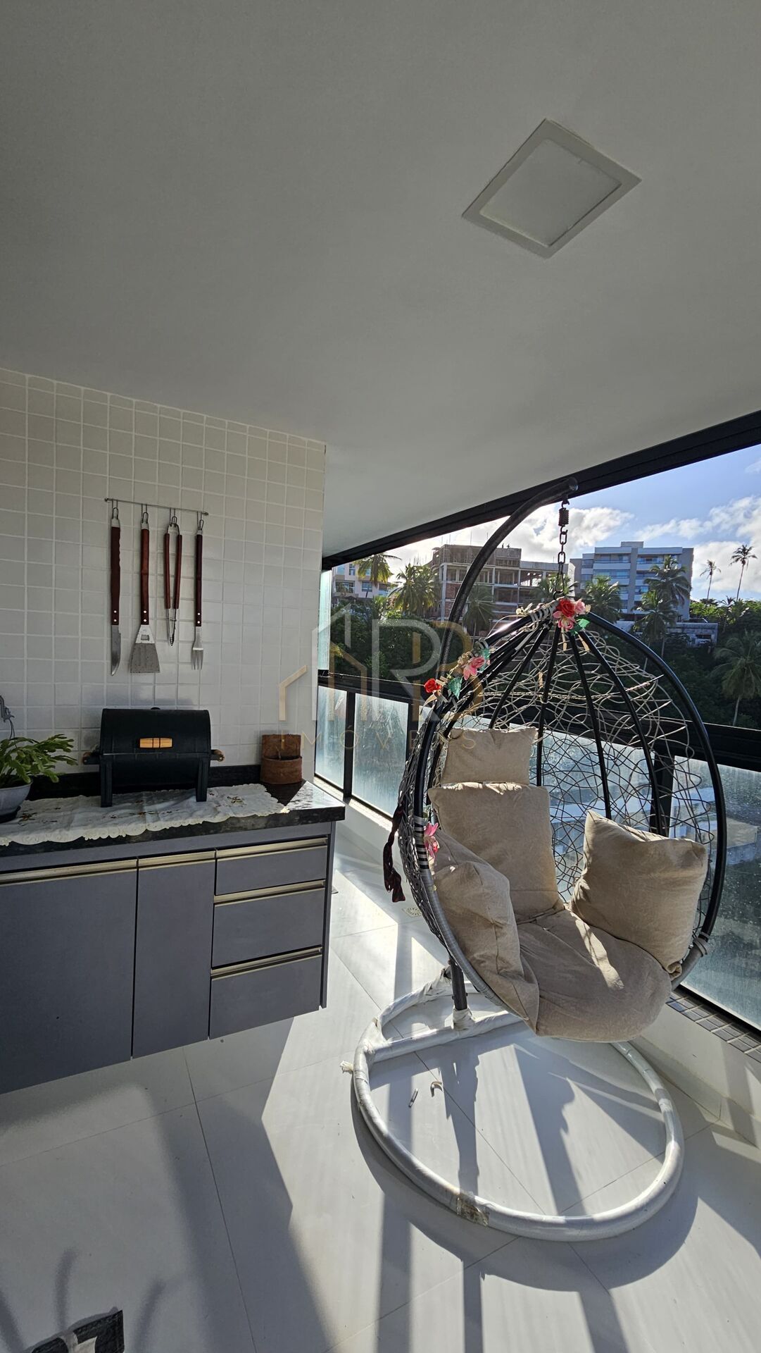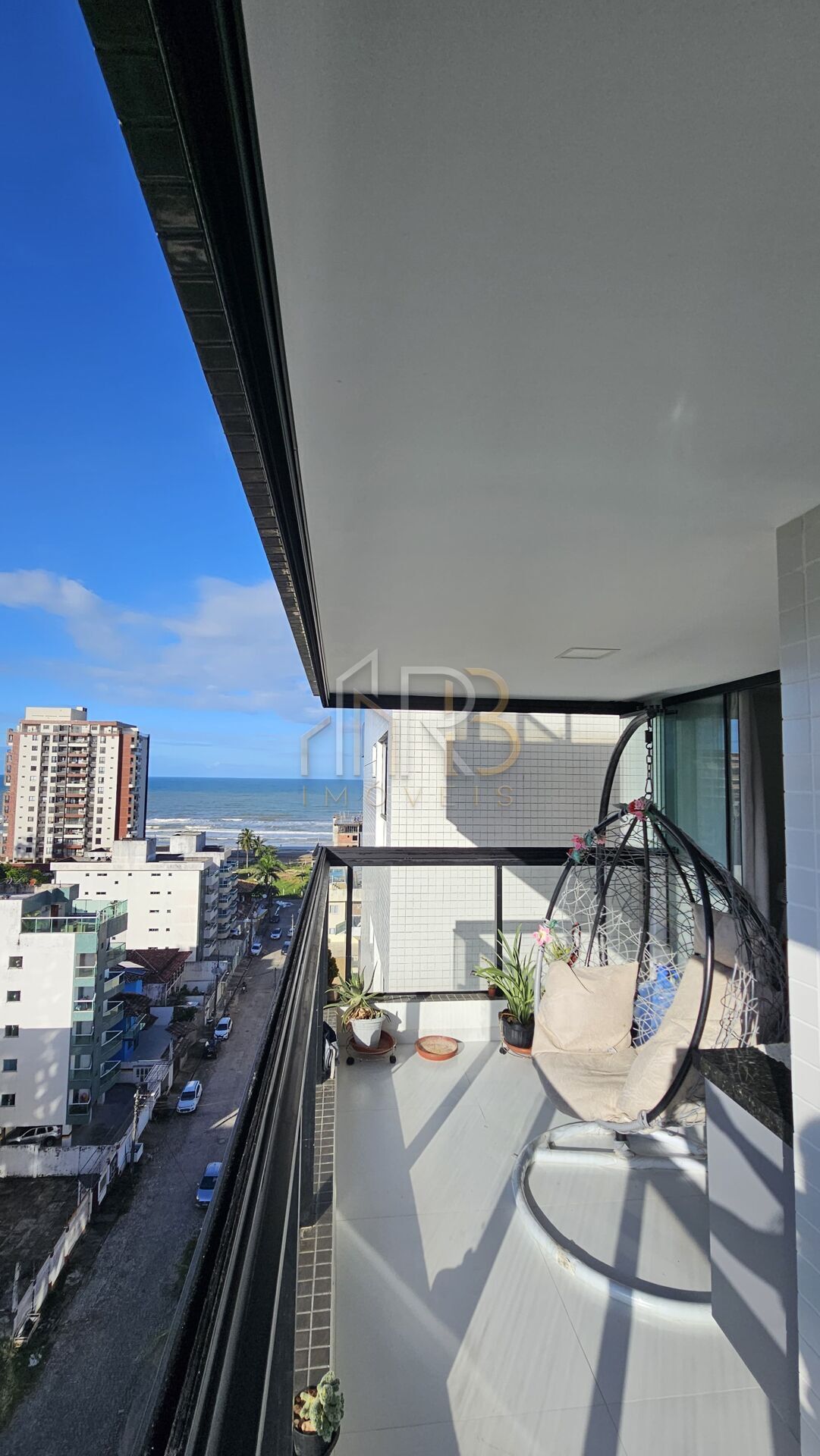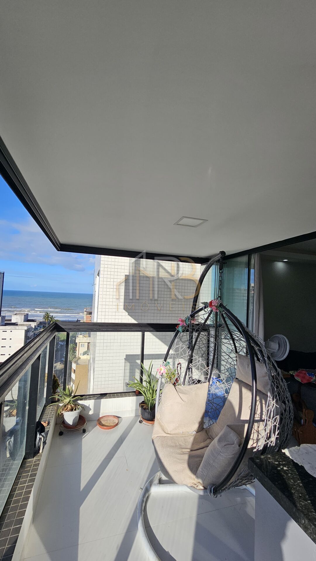 🔹 Varanda gourmet com fechamento de vidro e vista para o mar