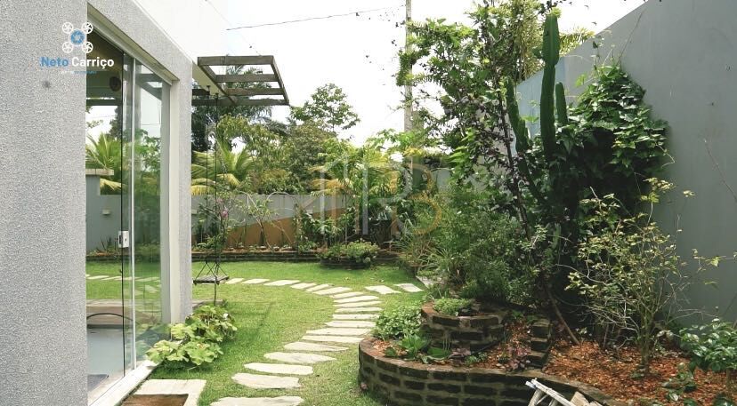Térreo: 1 quarto, sanitário social, varanda, área de serviços, sala de estar e jantar integradas, jardim, 2 vagas de garagem.