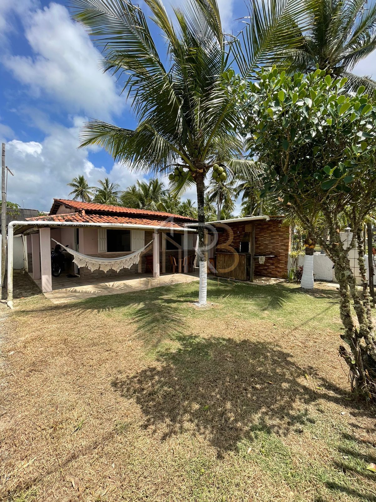 Terreno com jardim gramado e coqueiros produtivos