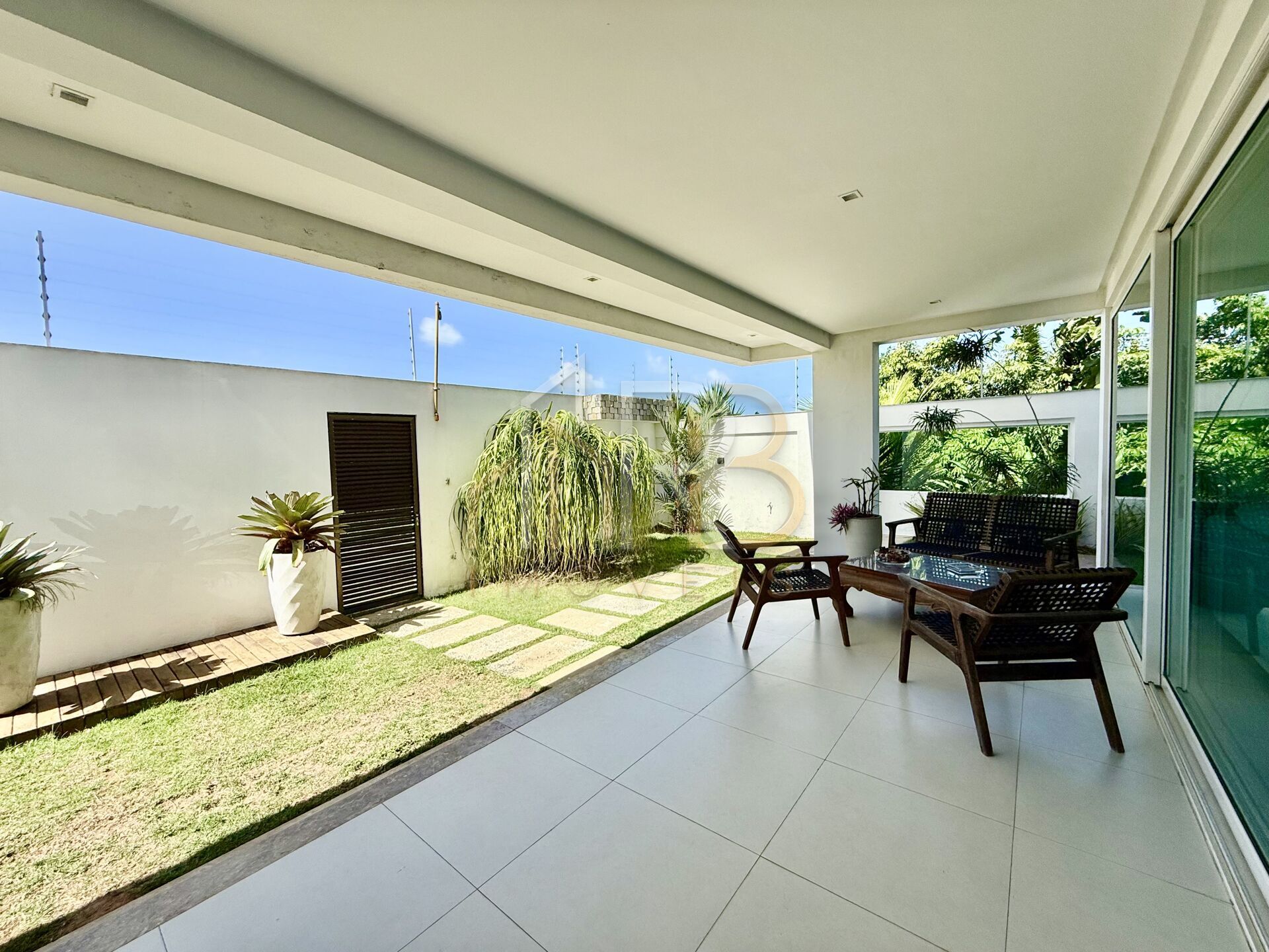 🏡 A casa combina alto padrão, conforto e integração com a natureza. Sua arquitetura moderna privilegia ambientes amplos, iluminados naturalmente por generosas janelas e vãos, conectando o interior à paisagem tropical ao redor.